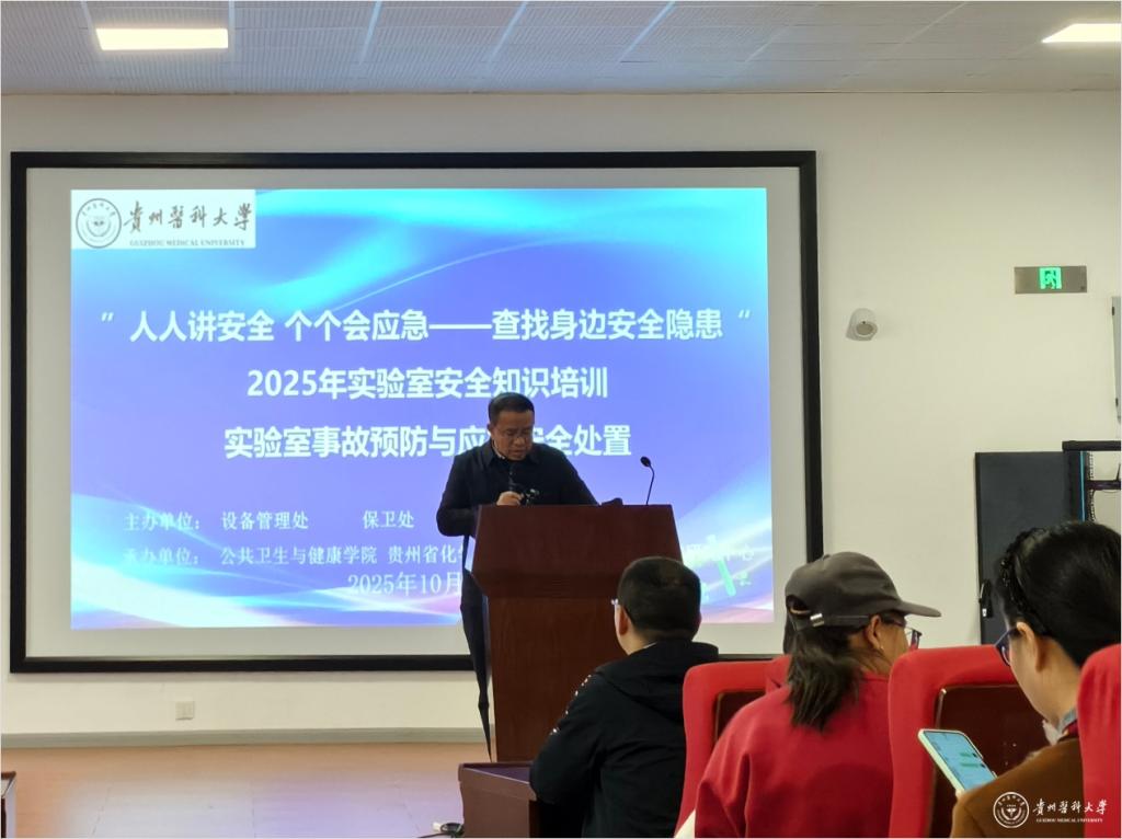 10月21日,由设备管理处、保卫处联合组织,公共卫生与健康学院、贵州省化学合成药物研发利用工程技术研究中心共同参与的2025年实验室安全培训及应急演练活动顺利举行。